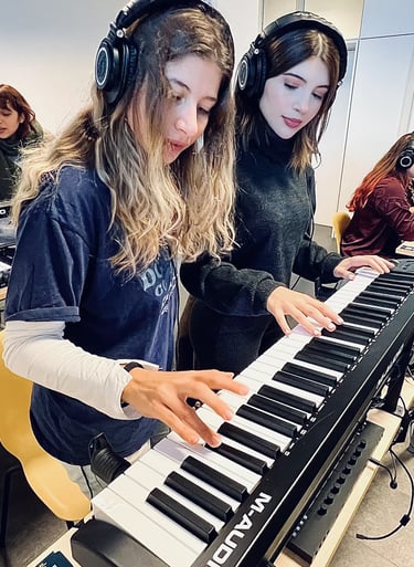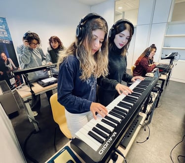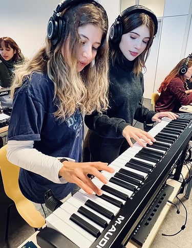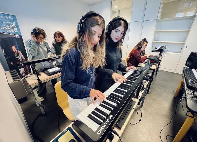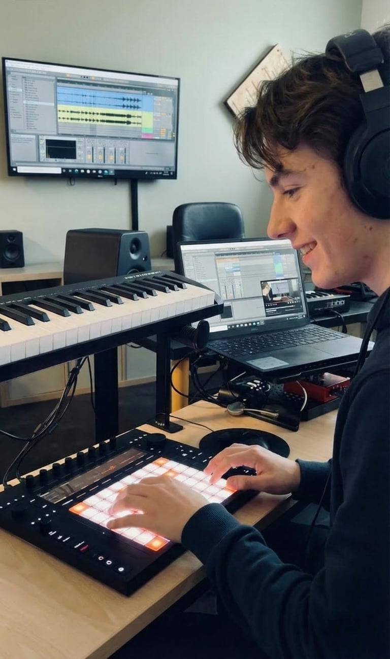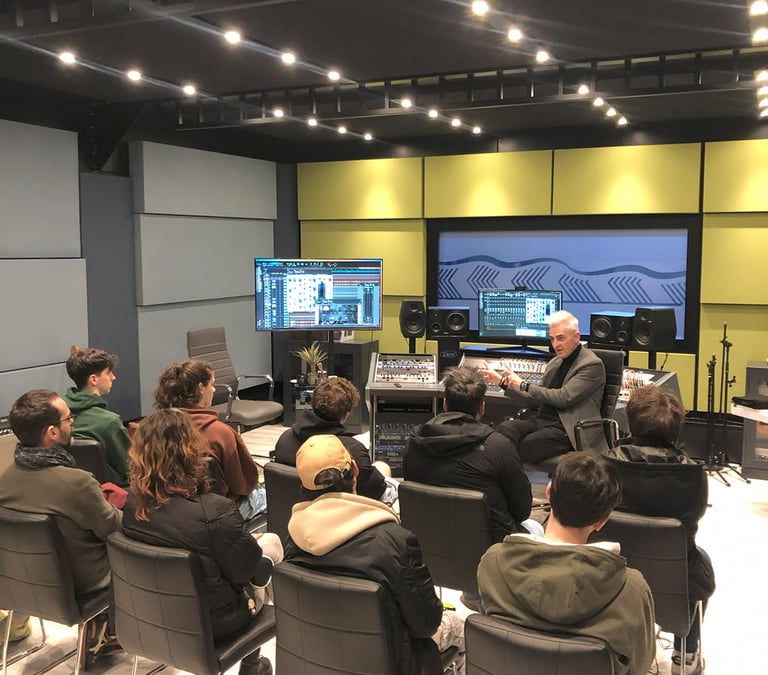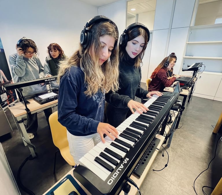 Dall'aula interamente dedicata ad Ableton allo spazio per le esibizioni dal vivo, fino alle sale attrezzate per la pratica individuale: ogni ambiente è progettato per prepararti al mercato reale del tuo specifico percorso.