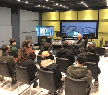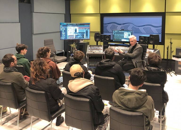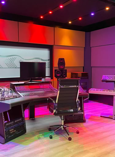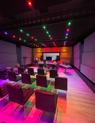 Studio di registrazione Dolby Atmos 7.4.1, console SSL professionale e laboratori con le tecnologie più moderne.